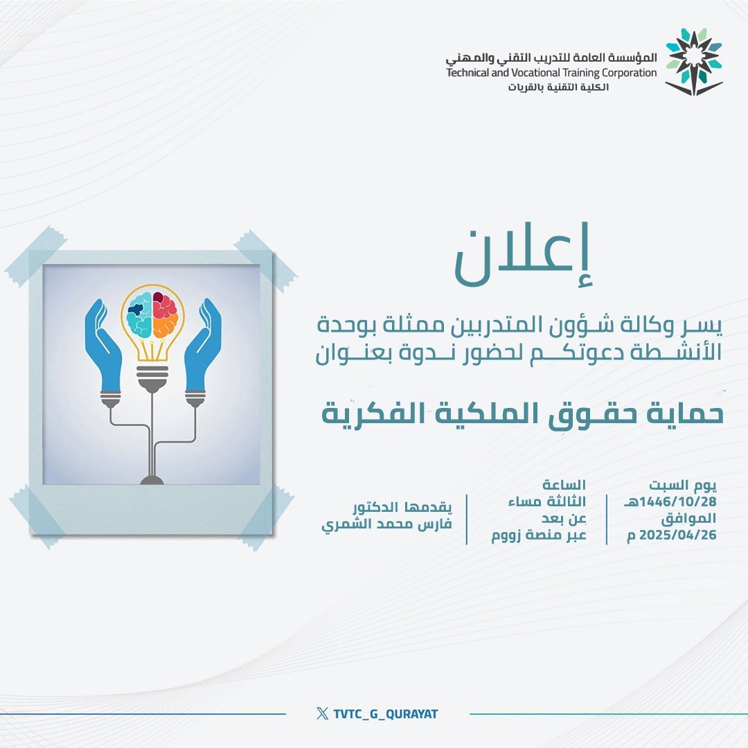 تحت رعاية: الكلية التقنية بمحافظة القريات